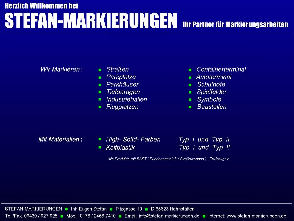 Kontakt: Tel./Fax: 06430 / 927925 - Mobil: 0176 / 2466 7410 - info@stefan-markierungen.de - www.stefan-markierungen.de