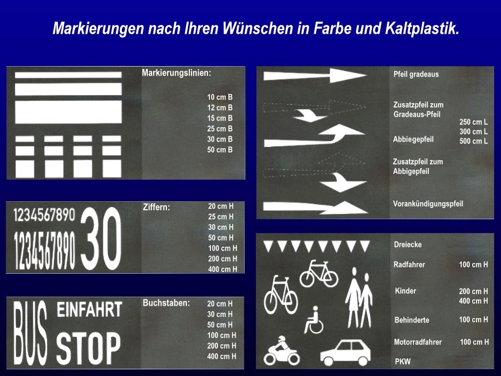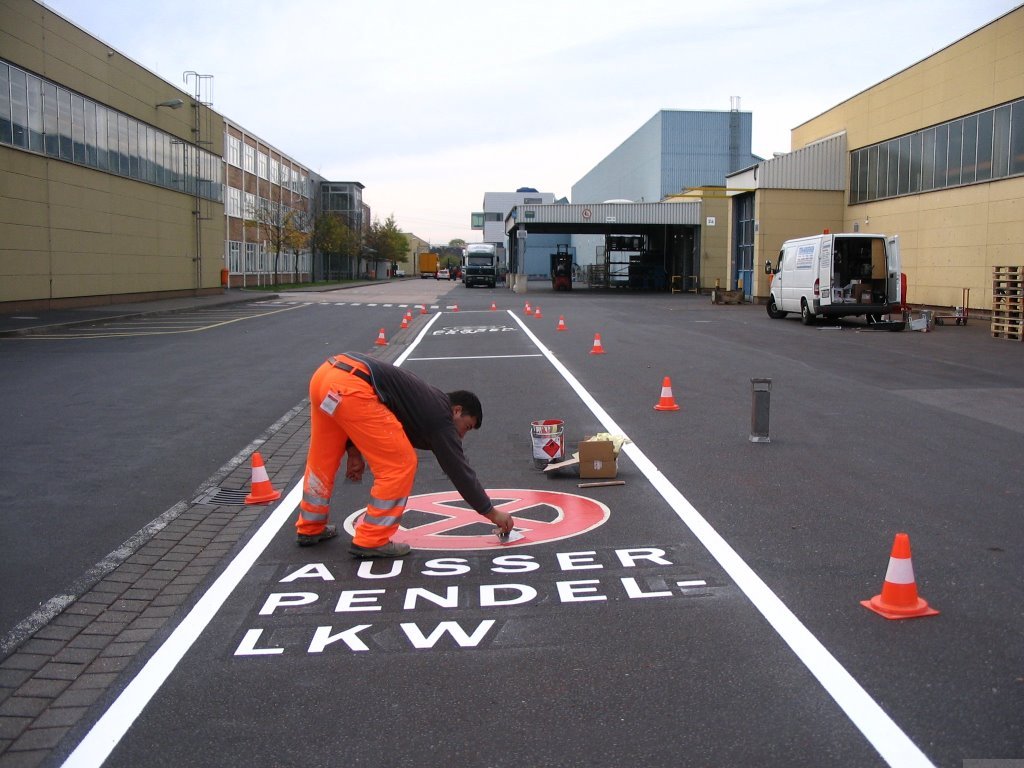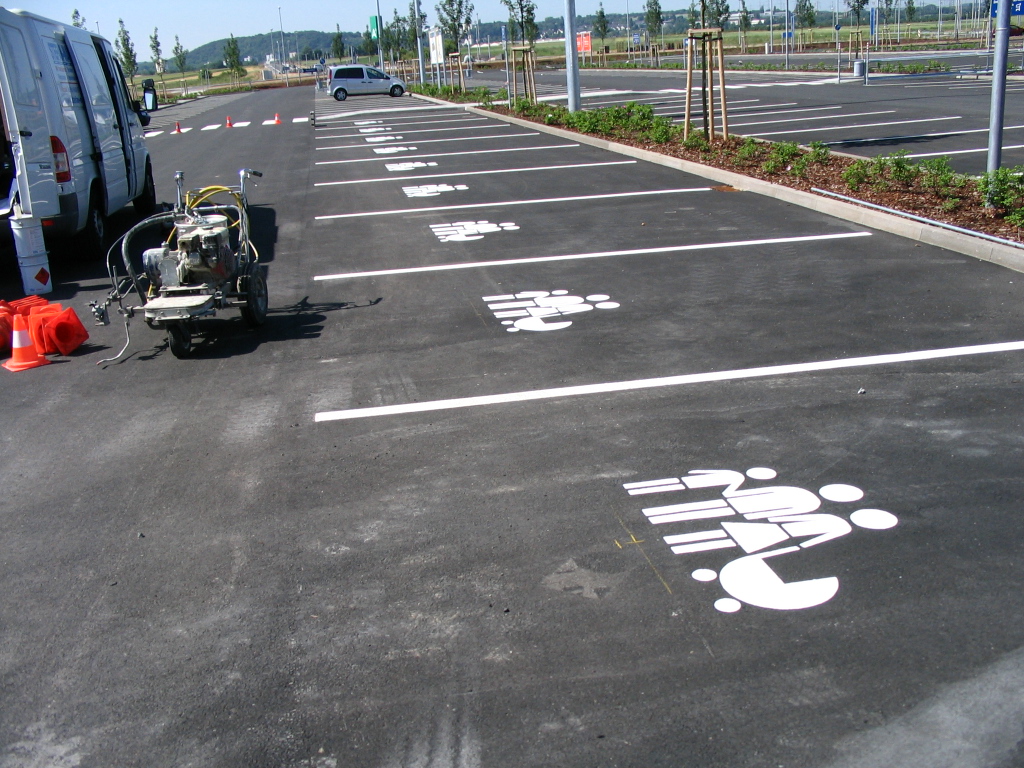 Wir Markieren: Straßen, Parkplätze, Parkhäuser, Tiefgaragen, Industriehallen, Flugplätzen, Containerterminal, Autoterminal, Spielfelder, Schulhöfe, Symbole, Baustellen .....